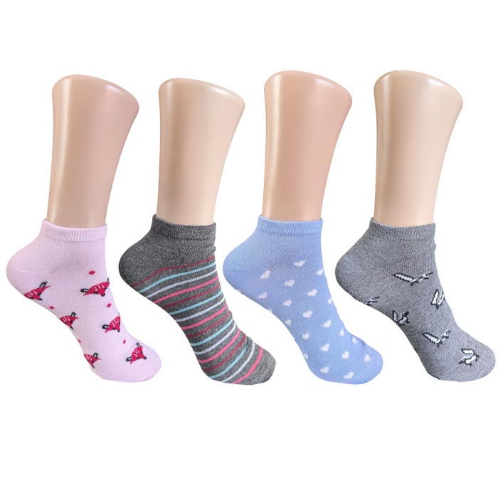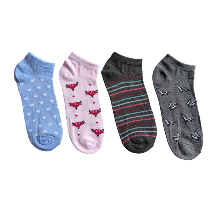 Socquette femme invisible, coton majoritaire. Motif différents "coeurs, rayures etc..." Taille unique : 35-40.