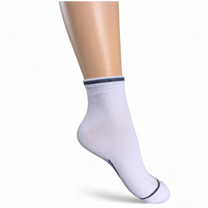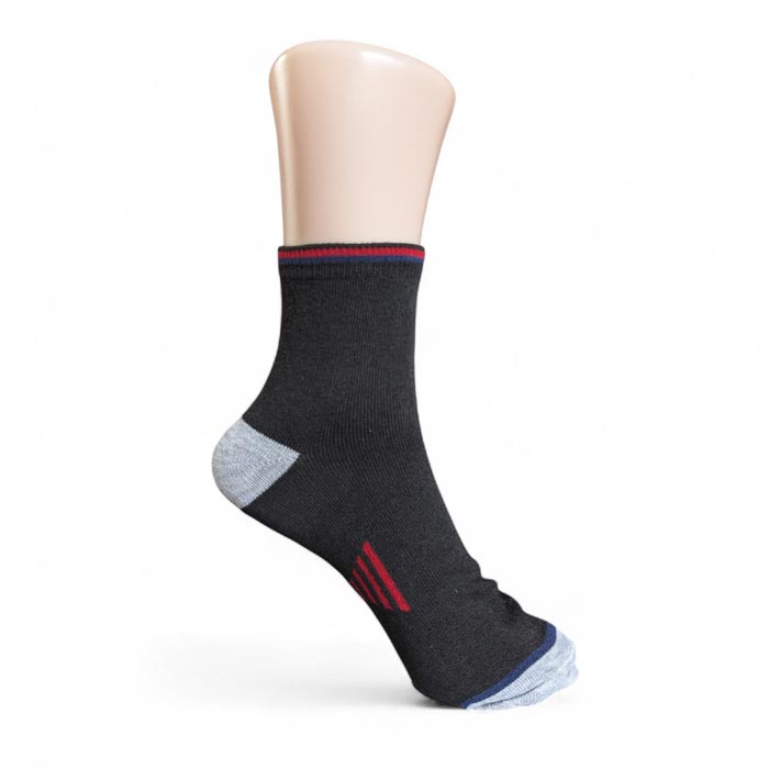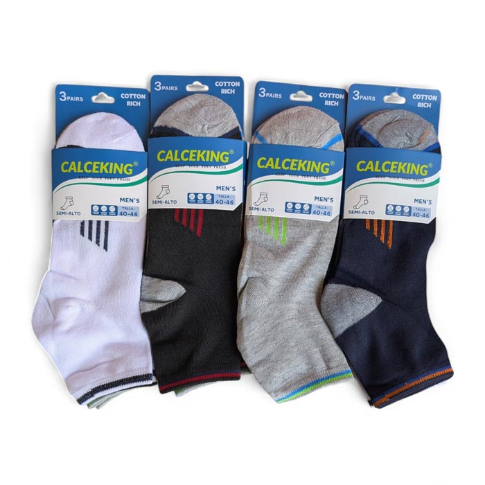 Chaussette courte pour homme, coton majoritaire. Chaussette avec motif graphique (voir photos) Bout de pied et bord côte liseré contrasté. Taille unique 40 à 46.